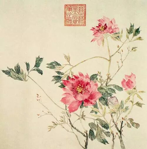 《花卉圖 這幅牡丹圖花枝葉柔弱無力,像是出自一般柔弱女子之筆,不太像是權傾一時太后心態。》